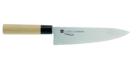 Die wichtigsten Messer aus der Haiku Serie gibt es nun auch in der Damastausführung. Die Klingen werden von Sumikama (KASUMI), dem ersten und vermutlich besten Hersteller von solchen Damast-Küchen Messern hergestellt und bei CHROMA geschliffen und montiert. Sie sind 32fach gefaltet und bringen es auf eine Härte von 59-60° HCR.