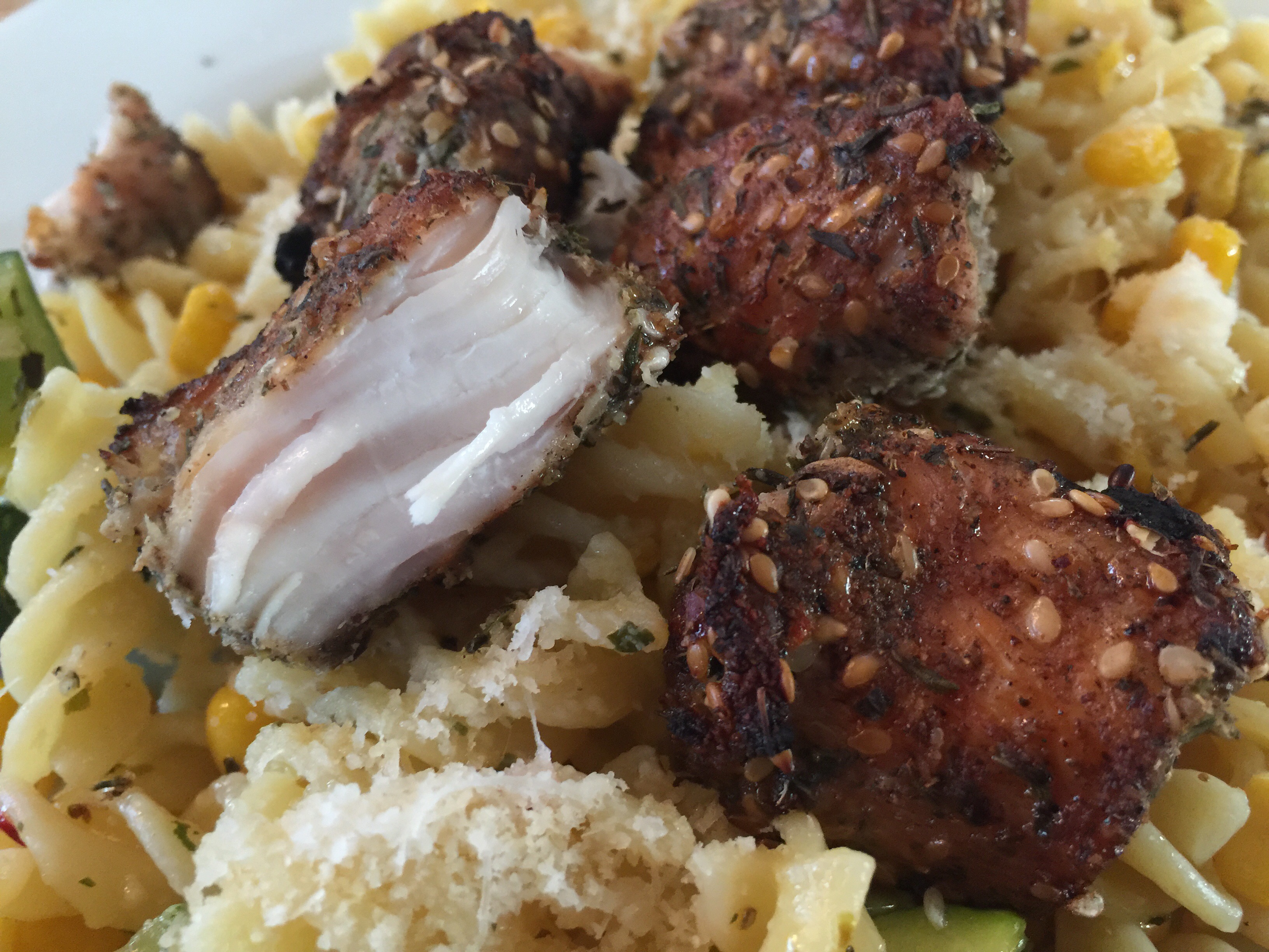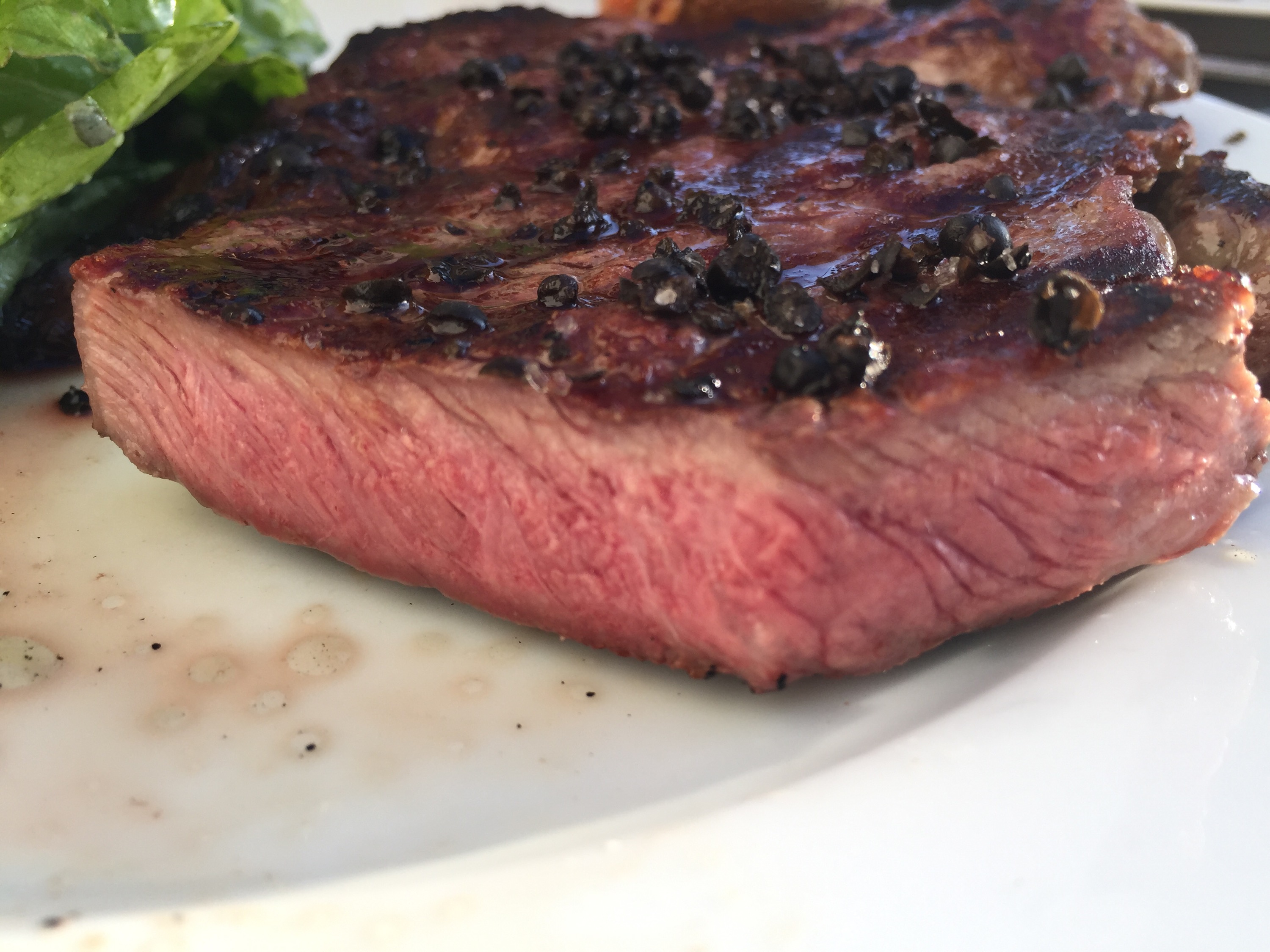 Lammlachse auf dem Salzstein gegrillt mit geräuchertem Pfeffer