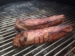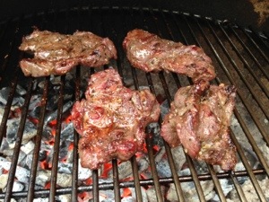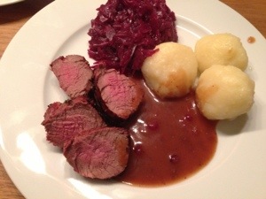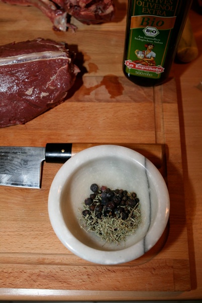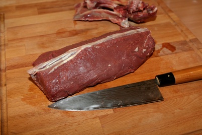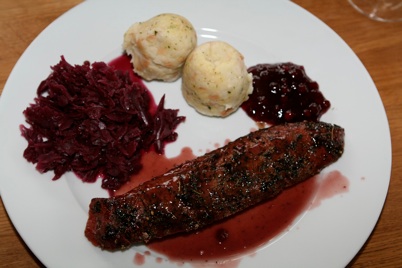 Den Rehrücken (vom Rehbock, den ich im Juni erlegen konnte) habe ich medium gegrillt. Beilage nach Wahl. Wir hatten selbstgemachte Aioli, Baguette und Salat!