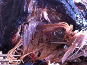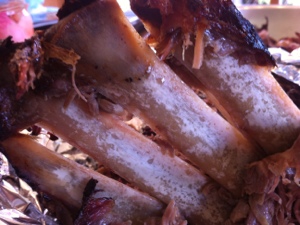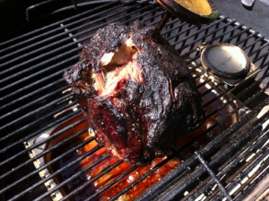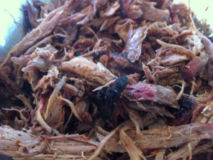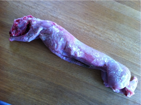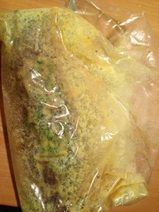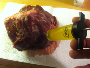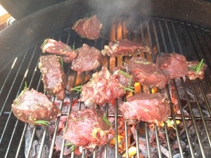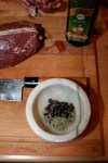 Die Marinade besteht aus Olivenöl, Knoblauch, Zitronenabrieb, ein wenig Zitronensaft, Honig, Salz, Pfeffer und frischem Thymian.
