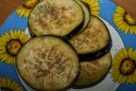 Auberginen gesalzen und Wasser ziehen lassen, anschliessend abgespült und mit Olivenöl und Rosmarin bestrichen.