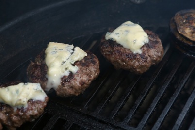 Kurz vorm Garpunkt Gorgonzola draufgebröckelt und indirekt weitergegrillt.