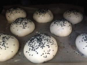 Leckere Flammlachsburger mit selbstgemachten Buns und selbstgemachter Honig/Senf/Dillsoße.