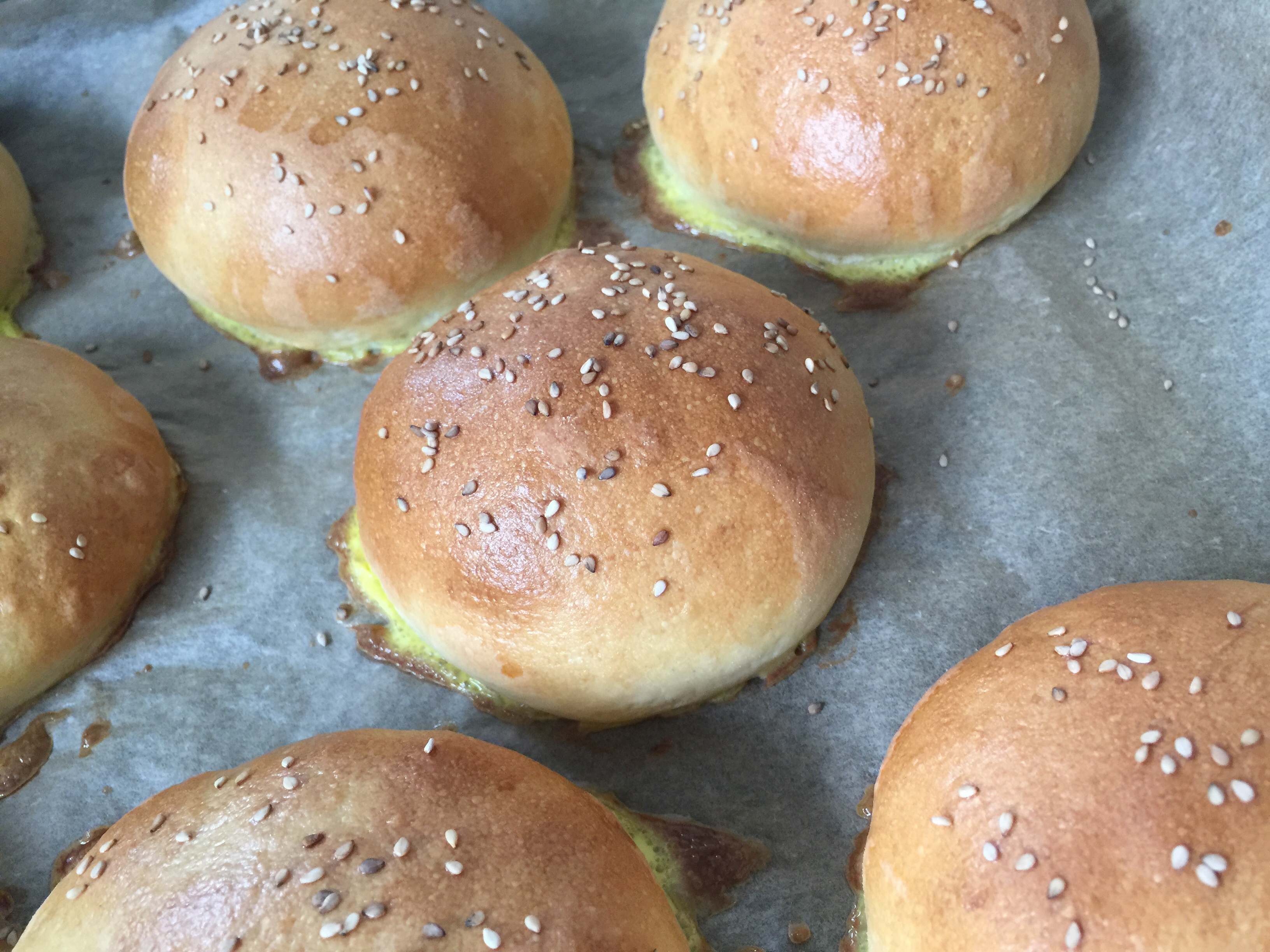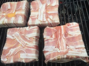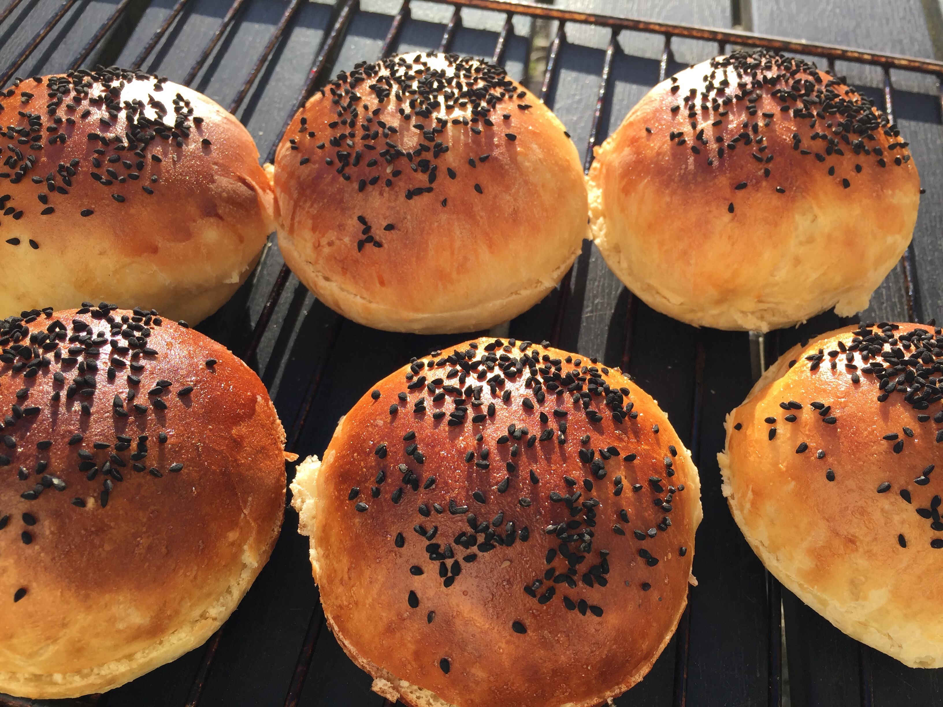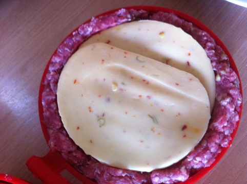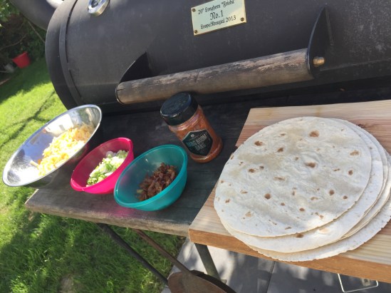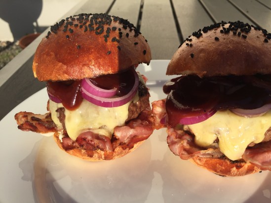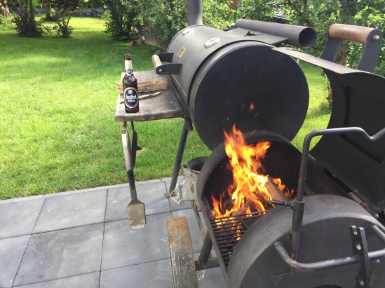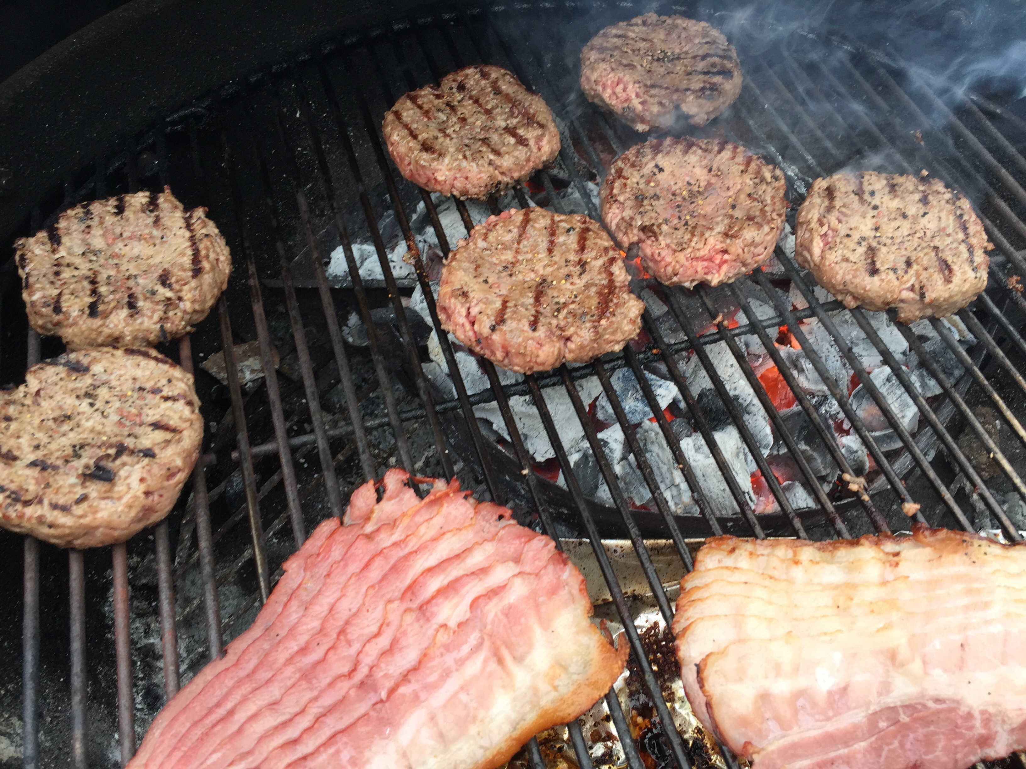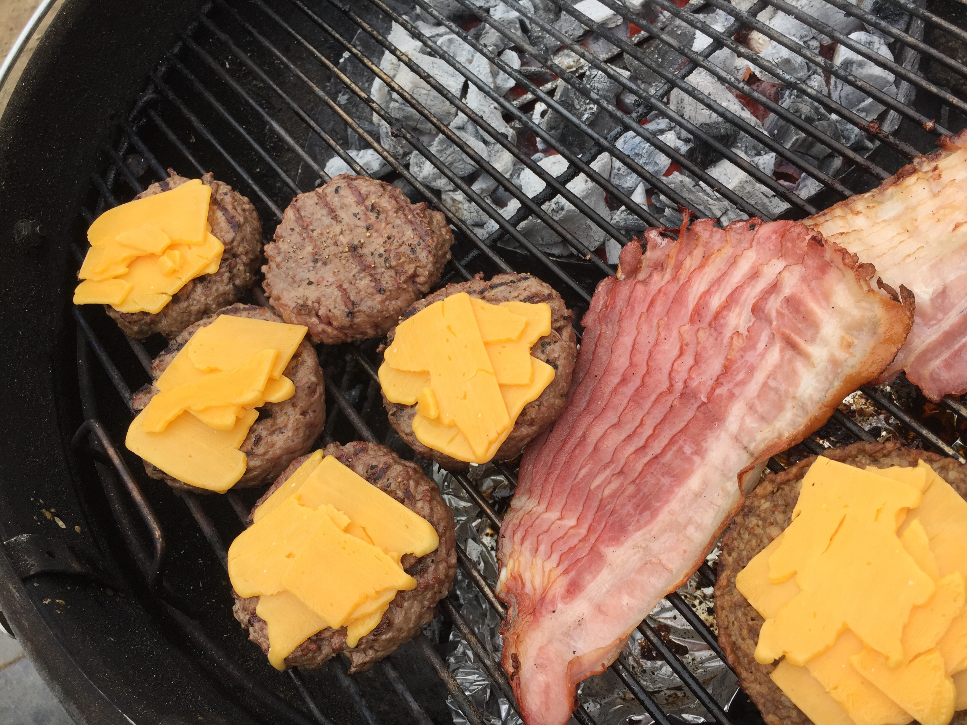 Smoker mit Buchenholz auf über 300 Grad angeheizt. Patties medium gegrillt.