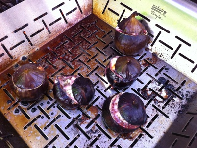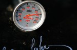 Nach einer halben Stunde regelmässig mit Habanerosauce, Honig, Schuss Rum und braunem Zucker moppen. Links für die Kinder wird mit Apfelsaft/Honig ohne Chili gemoppt.
