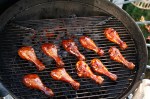 Marinierte Bio-Hähnchenunterkeulen kurz mit Hickory geräuchert und anschliessend unterm Deckel gegart.