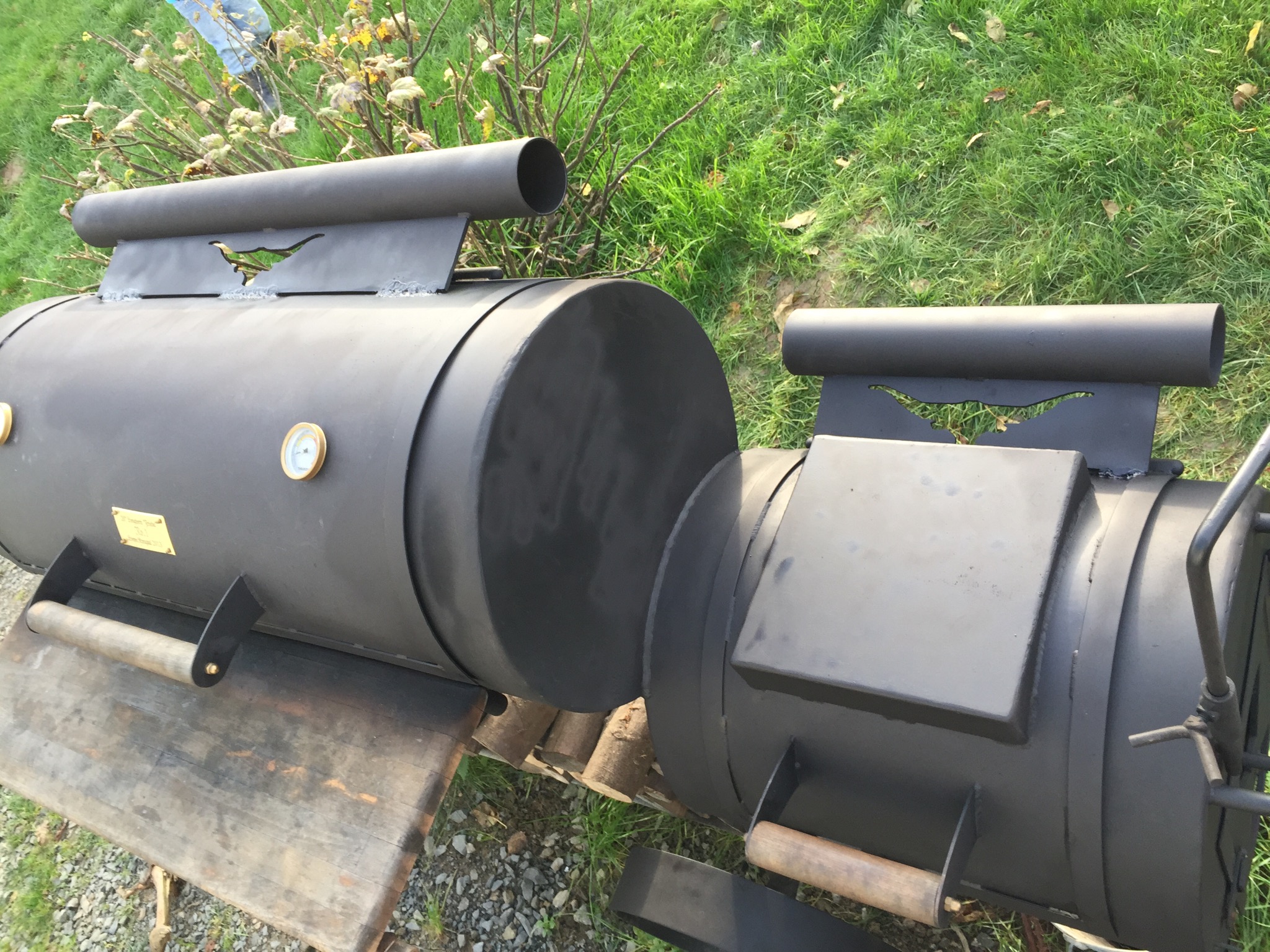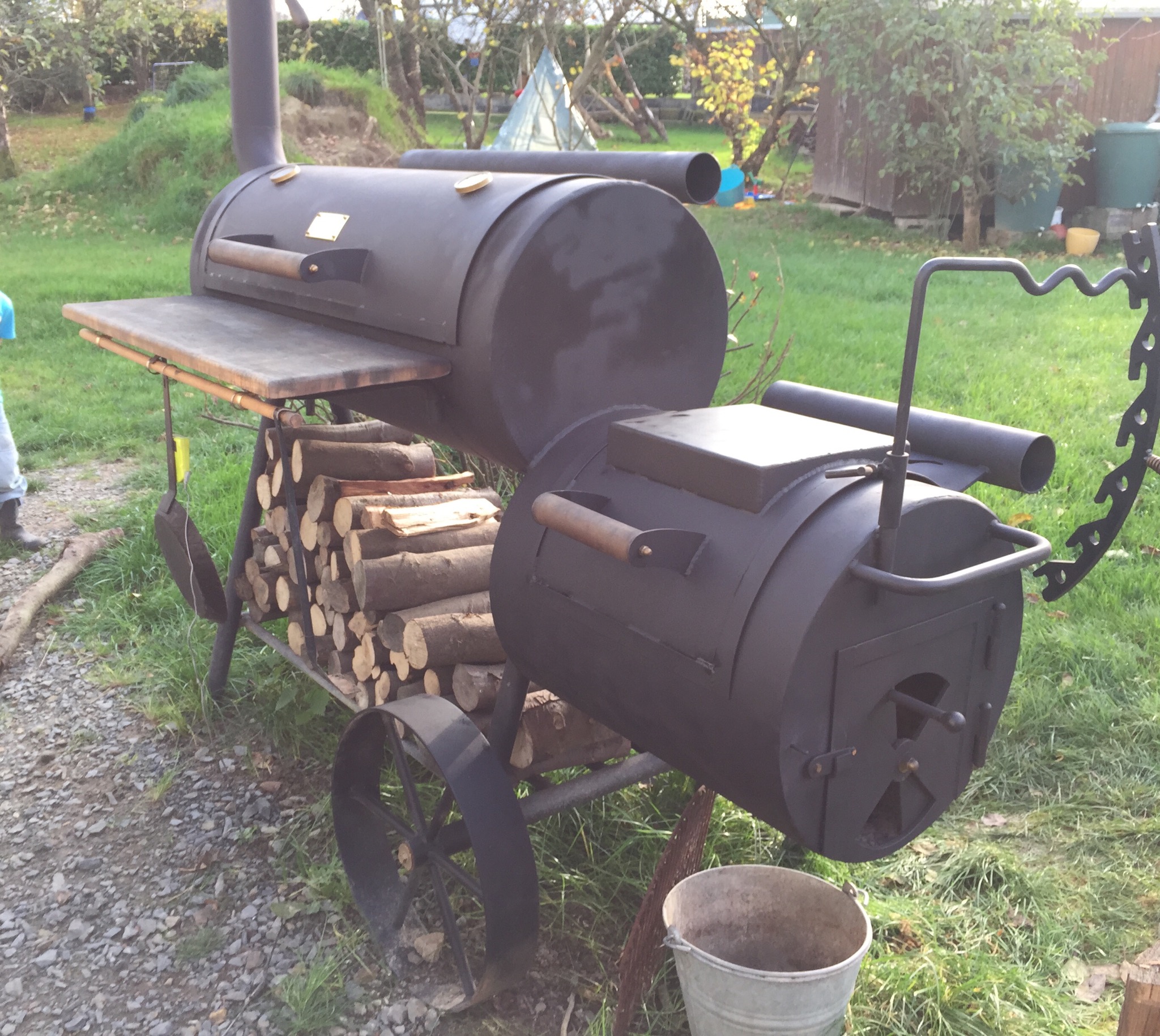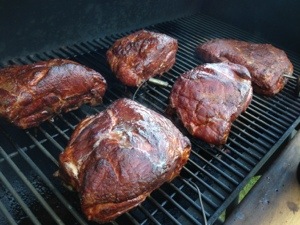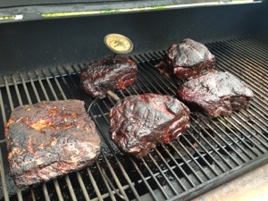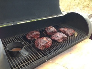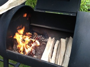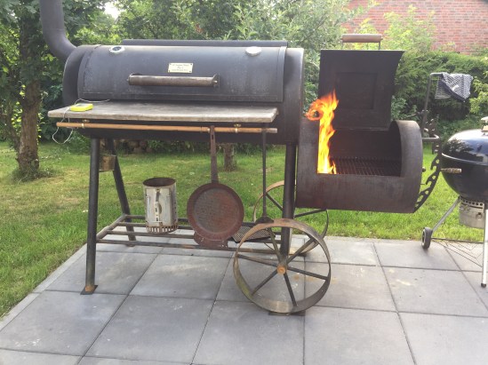 Smoker mit Buchenholz auf über 300 Grad angeheizt. Patties medium gegrillt.