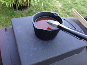 Schweinerückenbraten, Salz,Pfeffer, Paprikapulver und Buchenfeuer.