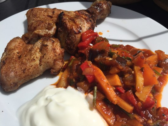 Ein bisschen Hühnchen aus dem Smoker dazu… Superlecker.