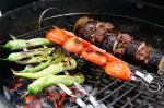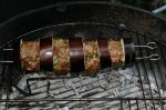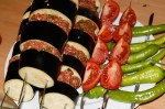 Heute mal türkisch angehauchtes aus der Kugel. Halb Lamm halb Rind (nur Lamm ist mir zu streng) mit türkischer Würzpaste, Petersilie, Knofi etc zwischen die geteilten Auberginen geknetet. Zusammen mit den Beilagen gegrillt. Feine Alternative. Lecker