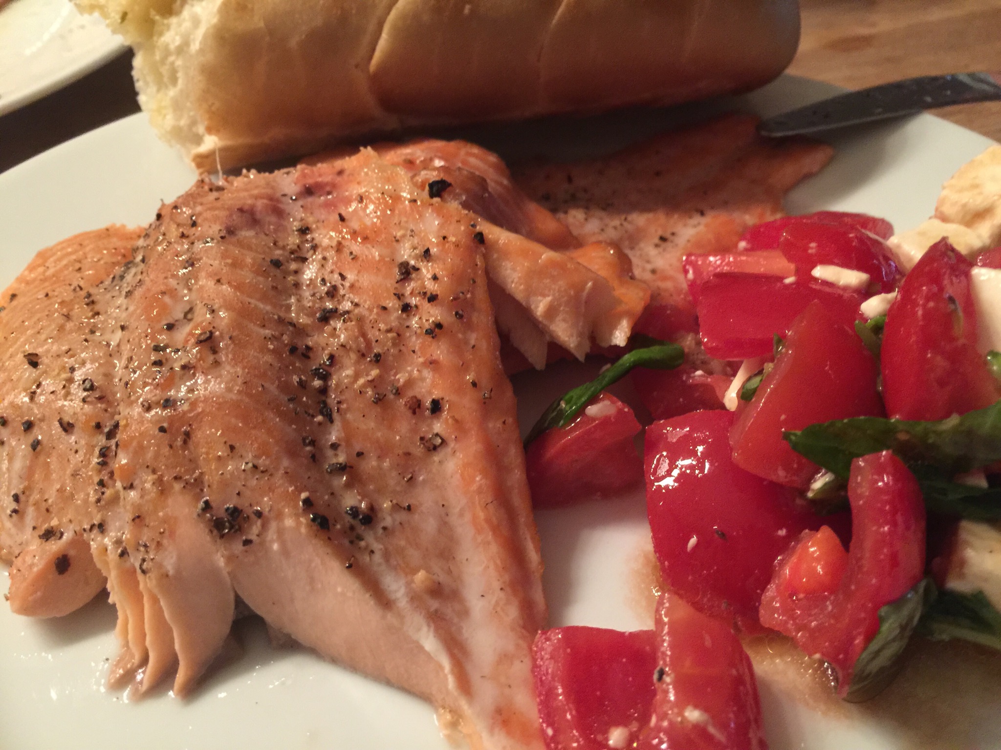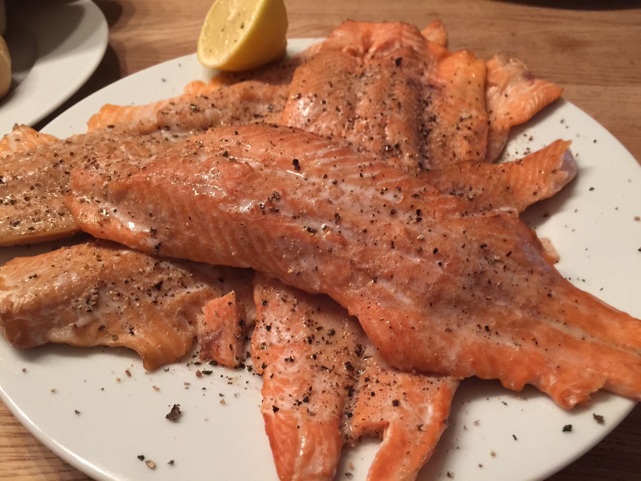 Heute gabs die erste selbstgefangene Forelle meines Sohnes.